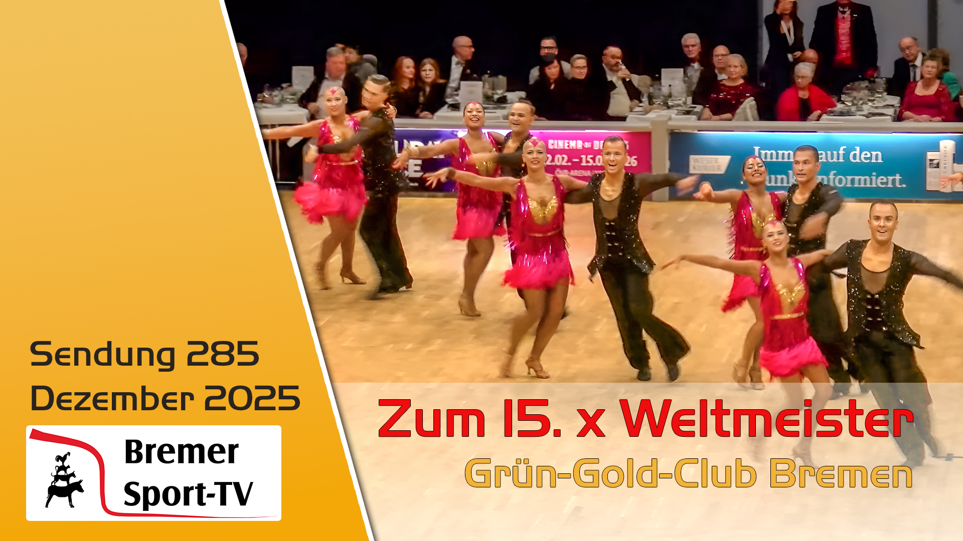 Besonders im Fokus: Der Grün-Gold-Club Bremen, der zu den erfolgreichsten Tanzsportvereinen der Welt zählt und bereits 15-mal Weltmeister geworden ist. Zudem zeigen wir Nachwuchsarbeit und Breitensport bei der Show des Sports des TSV Grolland – vom Kinderturnen bis zum Seniorensport.